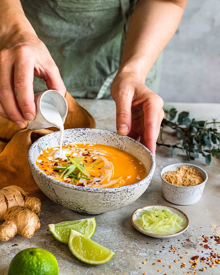 Vor dem Servieren mit BIO ASIA FOOD FINISHER abschmecken und mit frischen Kräutern garnieren.